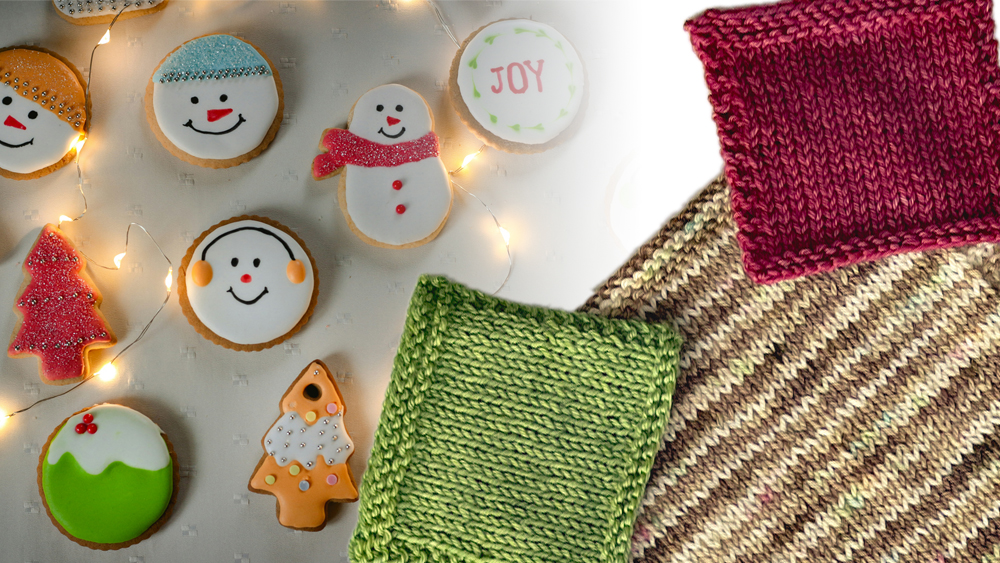 The Cookies for Santa Sock Kit is full of holiday fun. You get a full skein of the warm gingerbread brown colorway with festive speckles and a mini of Holly Jolly, Berry Merry, or both for cheerful accents.