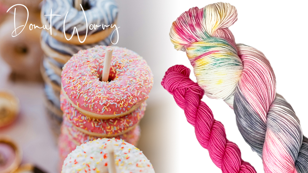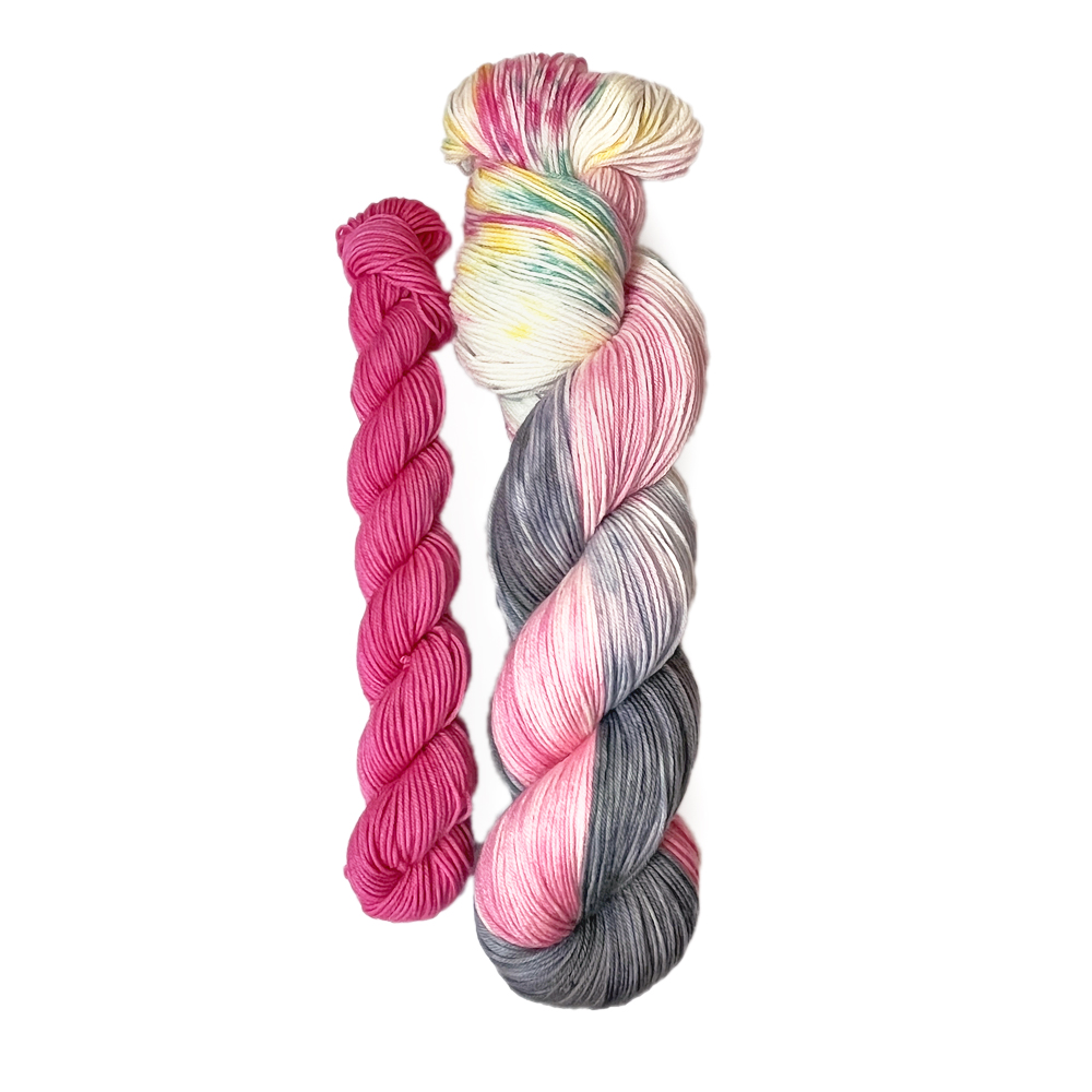 Get ready to treat yourself with the Donut Worry sock kit! This fun set includes a skein of Donut Worry sock yarn and a mini skein of Gumdrop Pink for a perfect pop of color. Let your creativity shine as you stitch up something fabulous!